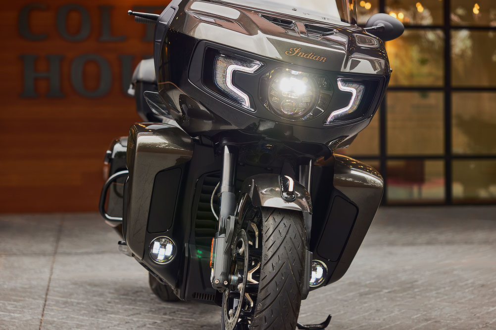 The Adaptive Pathfinder LED headlight combined with the rear saddlebag LED lights provide even more eye-catch style - even at night.